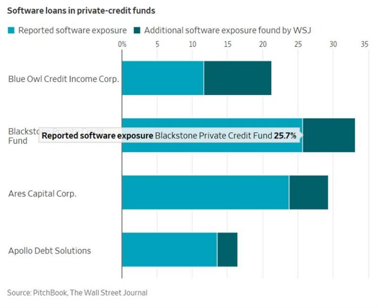 • Private Credit’s Exposure to Ailing Software Industry Is Bigger Than Advertised: Analysis by the Journal finds four of the largest private-credit funds have more exposure to the software industry than their filings suggest. [WSJ]